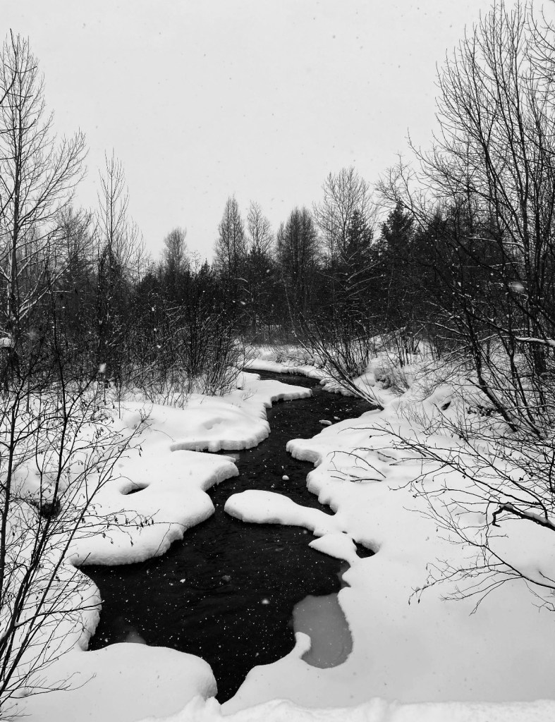 Le courant creuse son avancée, assure les méandres de son horizon, rend le cours perpétuel, le temps à la renverse, comme les vagues adossées au lit qui se forme. L’eau creuse autant qu’elle avance au temps long des falaises. Les bords sont faits de vieilles vagues assemblées, les bords sont faits de rives franchies, d’autant de creux que de champs d’inertie.