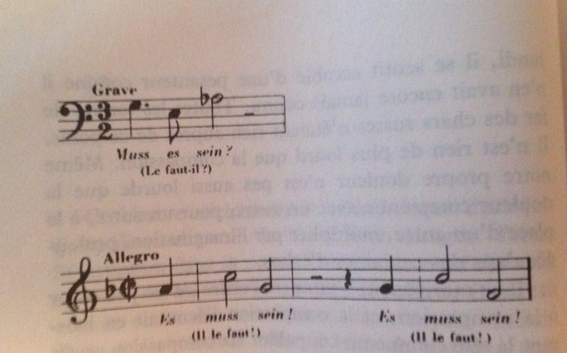 Beethoven’s last completed work before his death was the Opus 135 String Quartet whose last movement is entitled: “Der schwer gefasste Entschluss” meaning “The Resolution hard to take” or “The Difficult Decision.” Three ominous notes open the movement and were marked: “Muss es sein?” (“Must it be?”…A very definite fear and anxiety is expressed by this motif which is then replaced by an upbeat reply designated: “Es muss sein! Es muss sein!” (“It must be! It must be!”)… Many believe that what Beethoven was trying to convey was the feeling of being before the Great Eternal, the Awesome specter of God … We are uncertain and cowered by it, but when we see the Truth we embrace and rush towards it…. Personally I think that Everything that occurs out of necessity, everything expected, repeated day in and day out, is mute. Only chance can speak to us…This is an important line. What happens by fate = what happens by necessity = what is repeated = that which belongs to the realm of eternal return. What happens by chance = the fortuitous = what happens only once. And what happens only once, by chance, can have meaning, too…