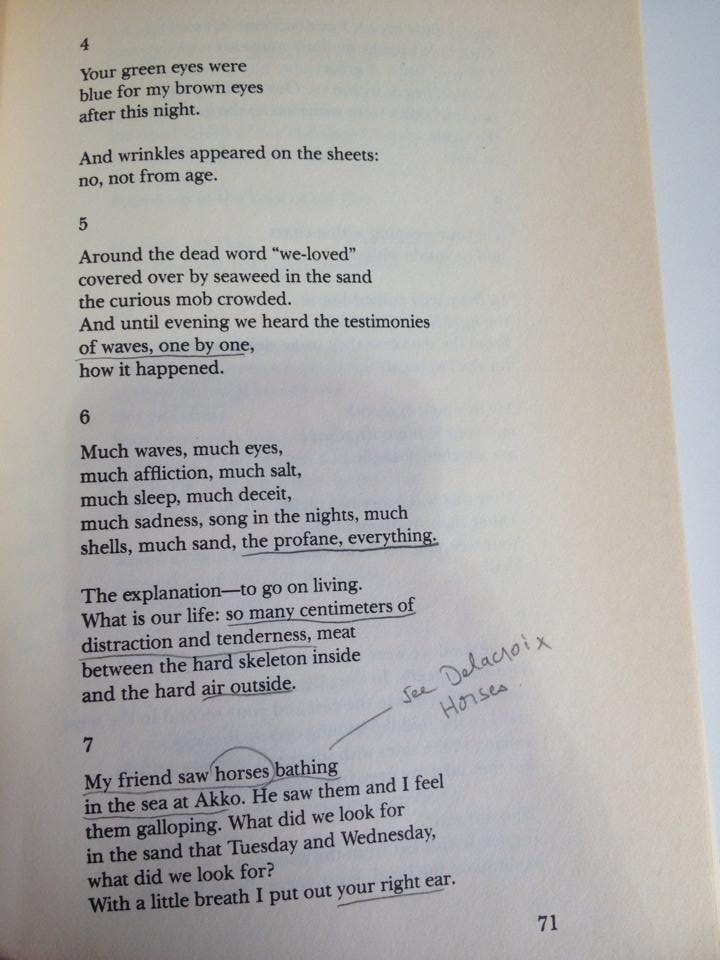 I think there is a clear distinction between great love poems and poems of great love. I mean Amichai’s poems are the latter kind because love itself is their subject, albeit love which is sought, imagined, idealized or delusory, its greatness only potential or possible.