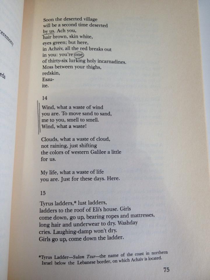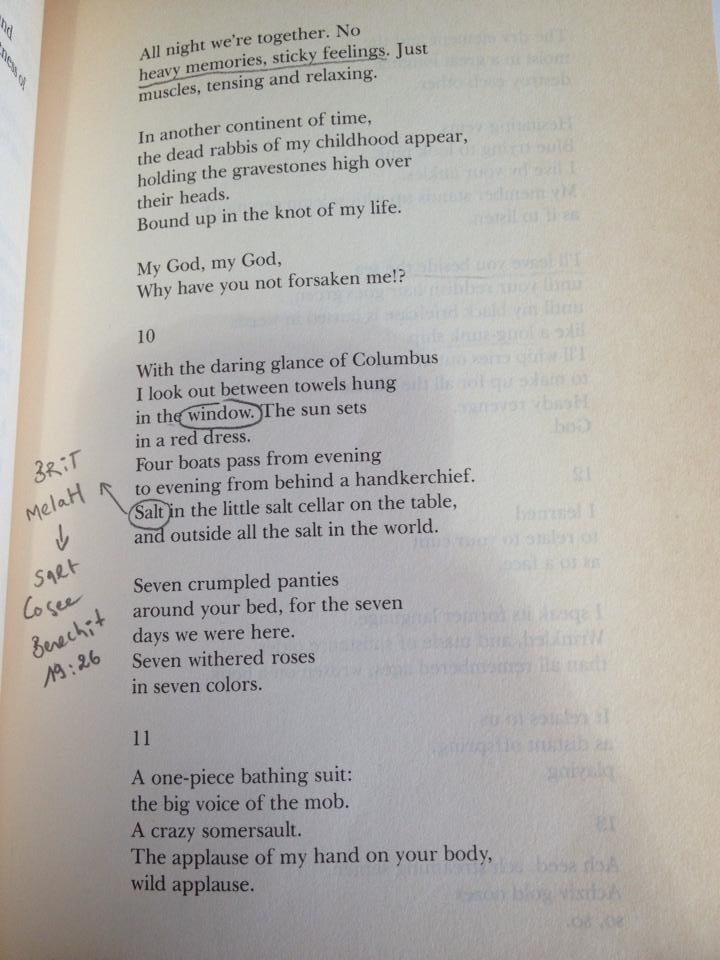 When I first started reading Amichai’s poetry I would structure it in any way that felt right. It was quite arbitrary really. Once I reached the half of it, I stopped and took a second look at the poem I just read and asked myself: is there an underling structure here? This is what I came up with.