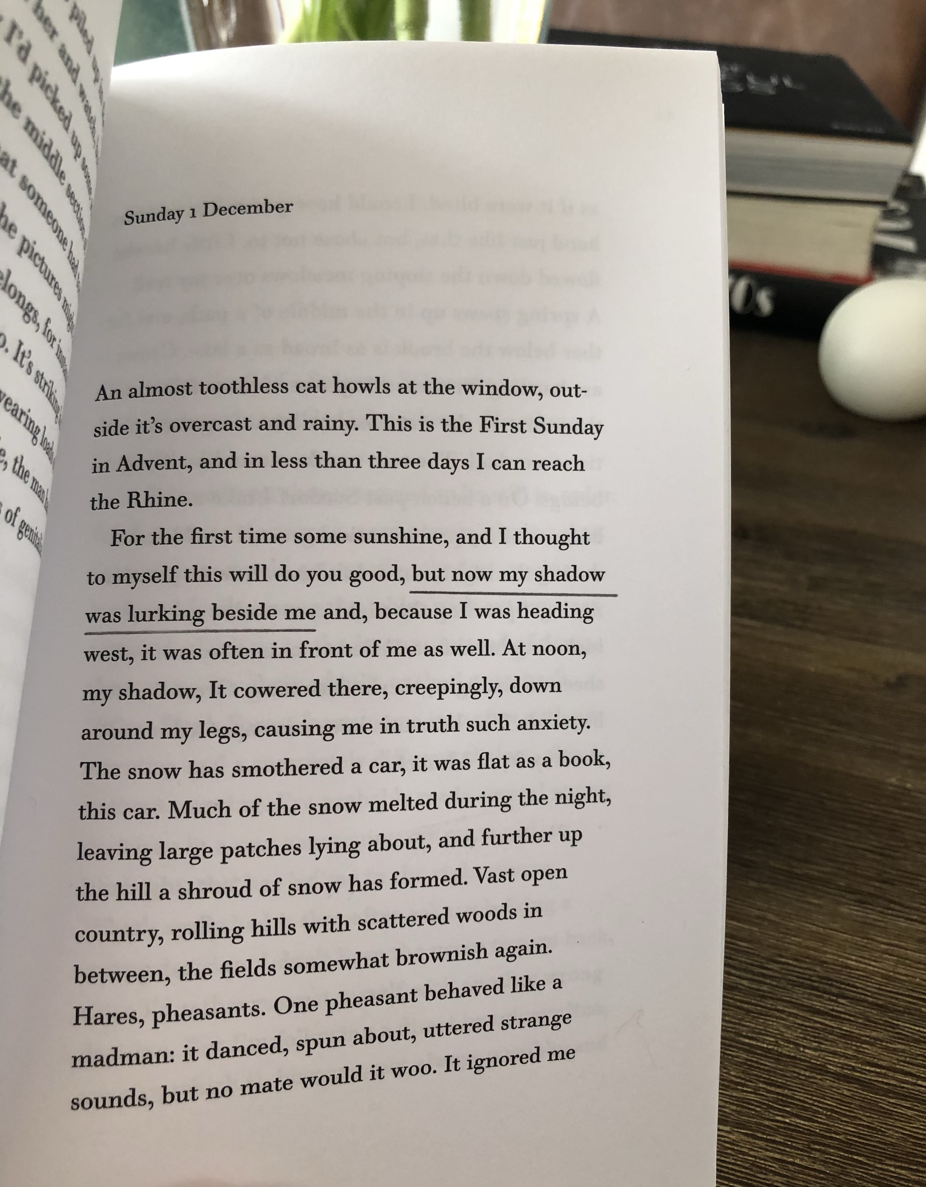 I always visualize him sitting on his wooden bench outside his Black Forest house, alongside his wife who, with her perverse knitting enthusiasm, ceaselessly knits winter socks for him from the wool she has shorn from their own Heidegger sheep.